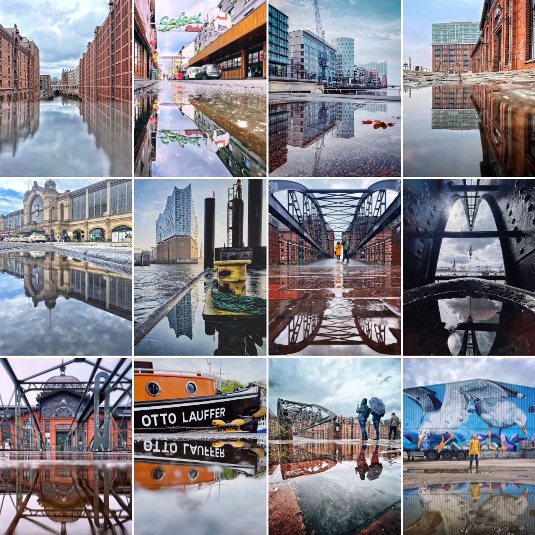 Schietwetter in Hamburg: Frau Elbvilles kleiner Pfützen-Atlas für 21 geniale Spiegelungs-Fotos